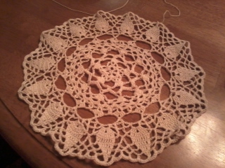 I still have a border to figure out, but I think I know where I want to go with this. And, no, I don’t use a pattern. I rarely use patterns for doilies, anymore. I enjoy the problem solving aspects of creating a new pattern.